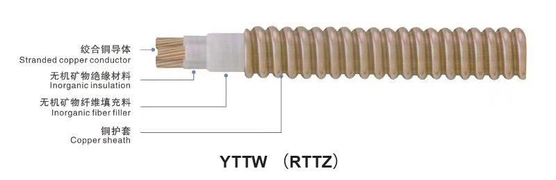 YTTW系列金屬護(hù)套無機(jī)礦物絕緣電纜是由本公司研制成功的重大科技創(chuàng)新產(chǎn)品。采用先進(jìn)的生產(chǎn)工藝,全自動機(jī)械化生產(chǎn),產(chǎn)品質(zhì)量可靠。產(chǎn)品屬國內(nèi)外首創(chuàng),有自主知識產(chǎn)權(quán)。產(chǎn)品結(jié)構(gòu)先進(jìn),導(dǎo)體采用多股銅絞線,阻抗小、載流量小、柔軟性好;絕緣采用耐高溫(1100℃以上)無機(jī)礦物絕緣帶機(jī)械繞包,絕緣層緊密均勻、耐潮濕、柔性好;護(hù)套采用銅護(hù)套(耐高溫1083℃),經(jīng)連接軋紋,散熱快,能彎曲。RTTZ電纜是2017年國家標(biāo)準(zhǔn)GB/T34926-2017 《額定電壓0.6/1KV及以下云母帶礦物絕緣波紋銅護(hù)套電纜及終端》發(fā)布后,由YTTW電纜重新命名而來。